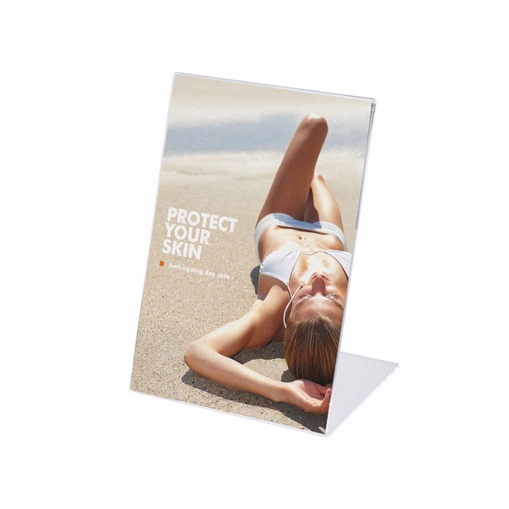 Plexi stojánek typu L ve formátu A6, který je orientovaný na výšku, je skvělým řešením pro prezentaci reklamních letáků či jiných tiskovin, a to nejen v kancelářském prostředí. Tento moderní nástroj je vyroben z kvalitního plexiskla, které zabraňuje jak vyblednutí, tak i poškození obsahu. Stojánek je určen k vystavení na viditelné místo, kde se díky svému zpracování stane snadno středem pozornosti.