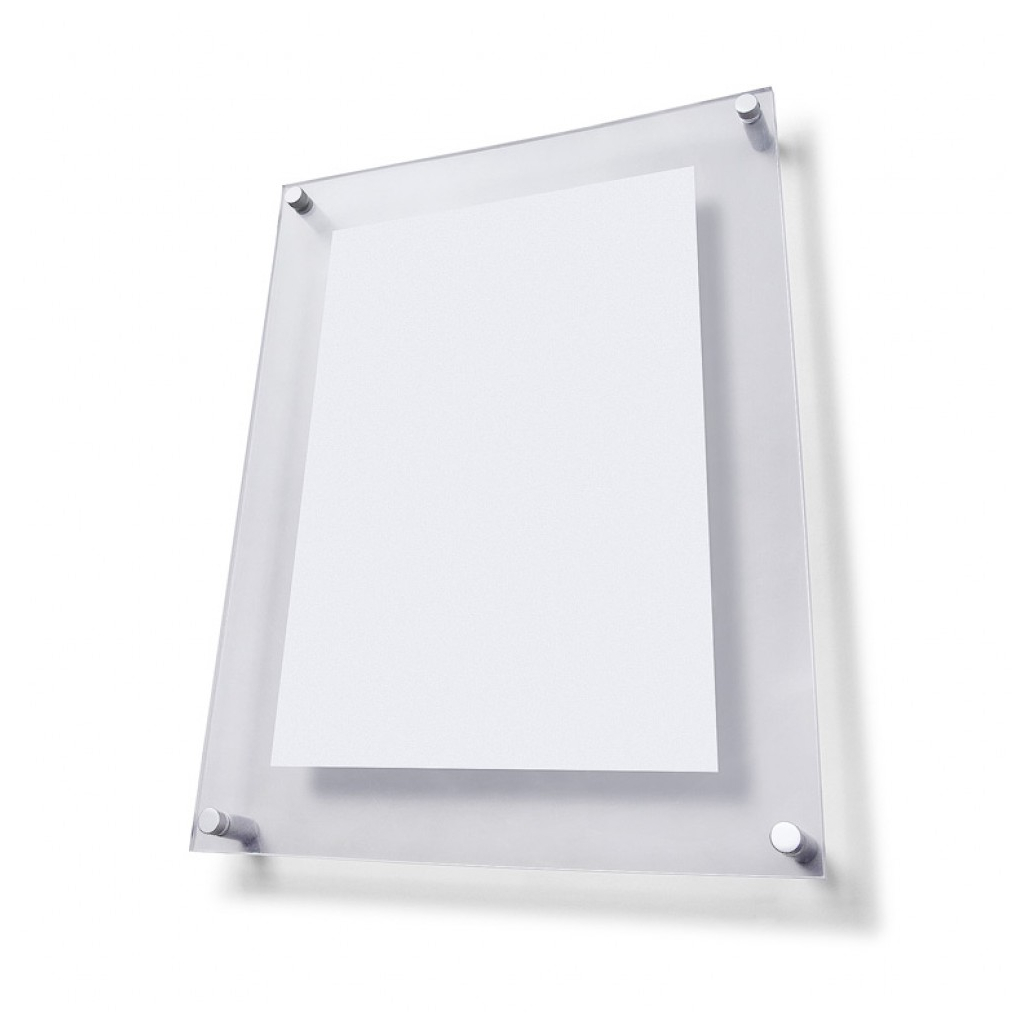 Tabule pro formát velikosti A4 disponuje dvěma tabulkami z plexiskla, mezi které můžete prezentovanou tiskovinu pohodlně vložit a následně je spojit pomocí distančních šroubů.