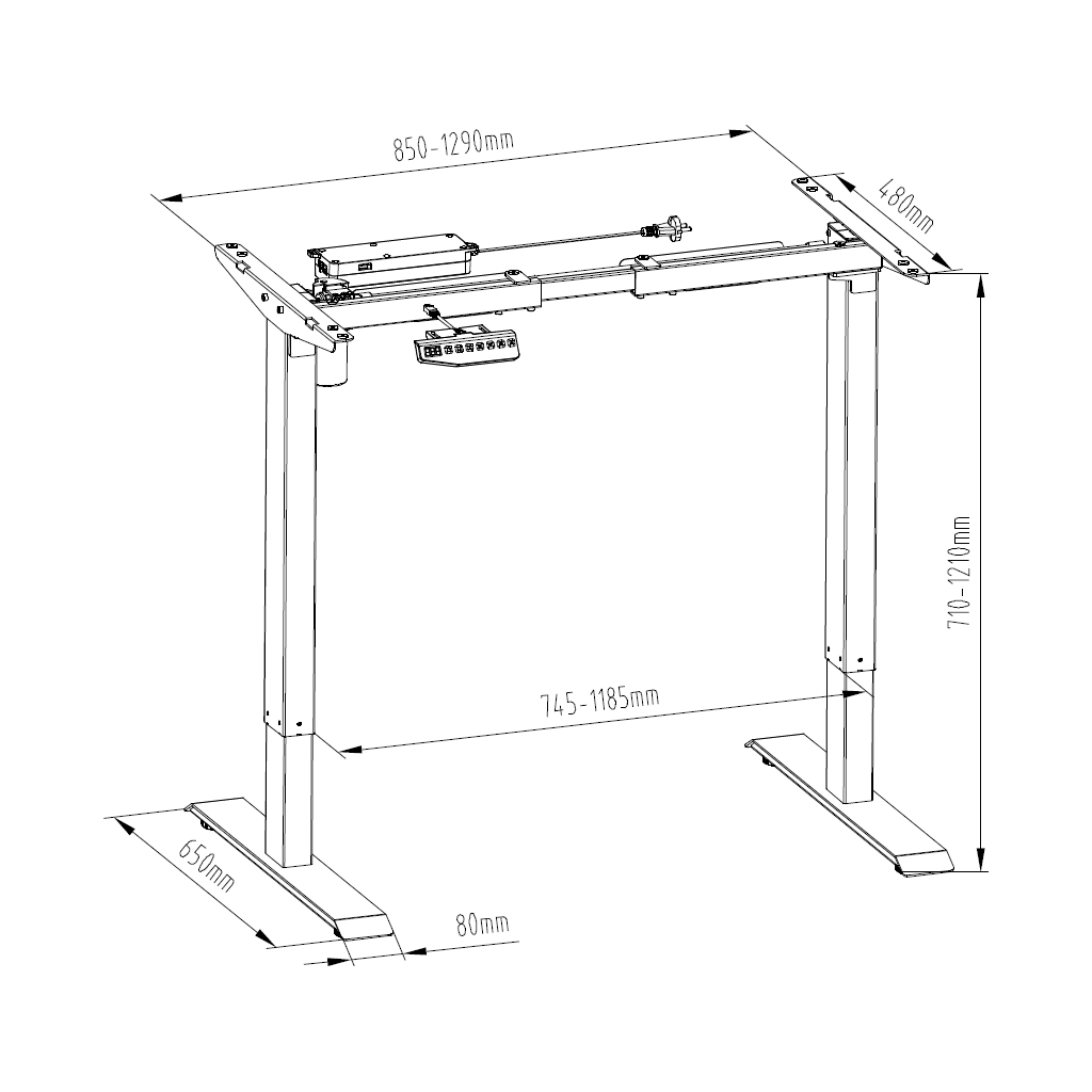 Kovová podnož má variabilní délku 85–129 cm a šířku 65 cm, což zaručí skvělou stabilitu. Napájení řeší kabel do klasické 230V zásuvky.