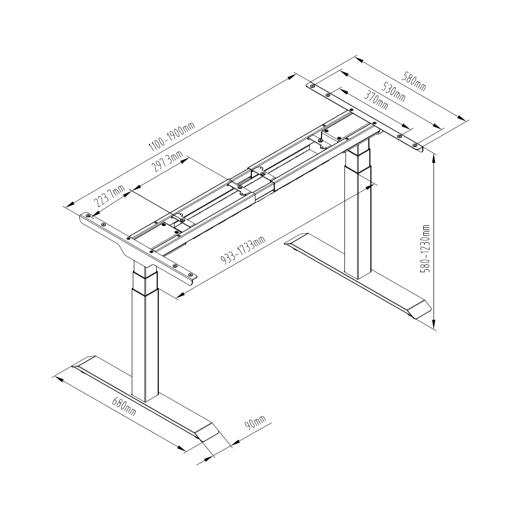 Balení obsahuje pouze samotnou podnož s příslušenstvím a montážním materiálem. Doplníte ji libovolnou deskou s rozměry od 120 × 60 do 200 × 80 cm.Proč vybrat právě podnož OfficeTech D?