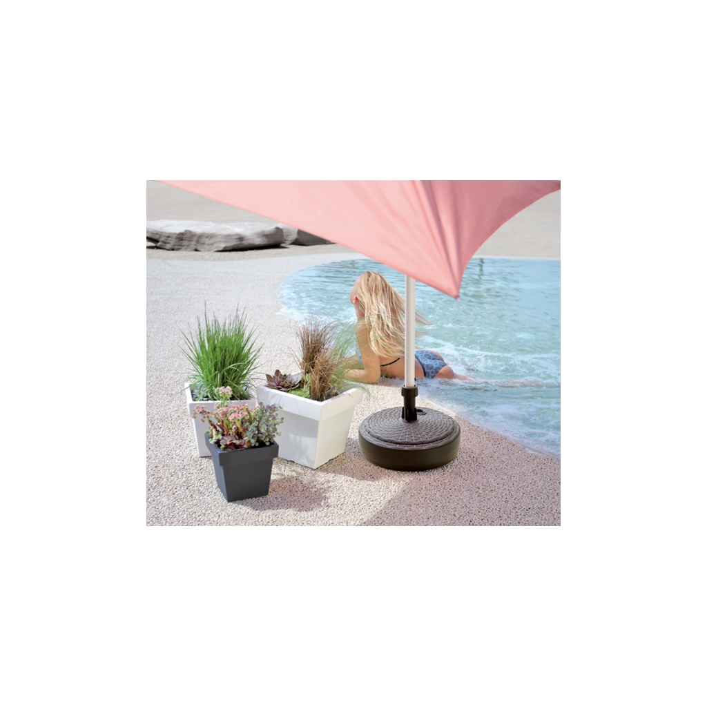 Zahradní slunečník vás při venkovním posezení ochrání před přímým sluncem i občasnou přeháňkou. Aby vás nezaskočily ani poryvy větru, pořiďte si k němu i stabilní základnu v podobě tohoto podstavce.