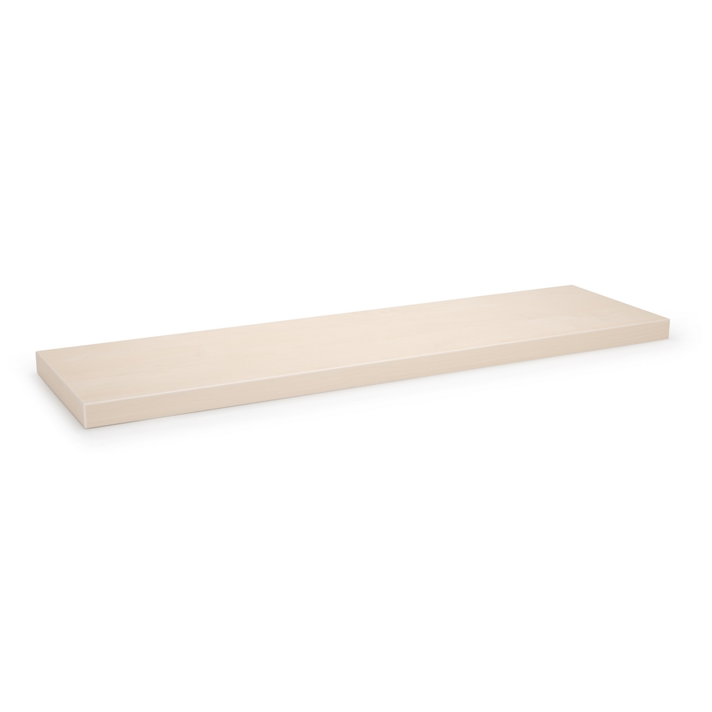 Tato police je vyrobená z laminované dřevotřísky a její rozměry jsou 80 x 22 x 2,8 cm (délka × hloubka × výška). Nabízíme ji ve 4 typech dezénů – bílá, buk, javor a ořech. Je opatřená ABS hranou o tloušťce 2 mm.