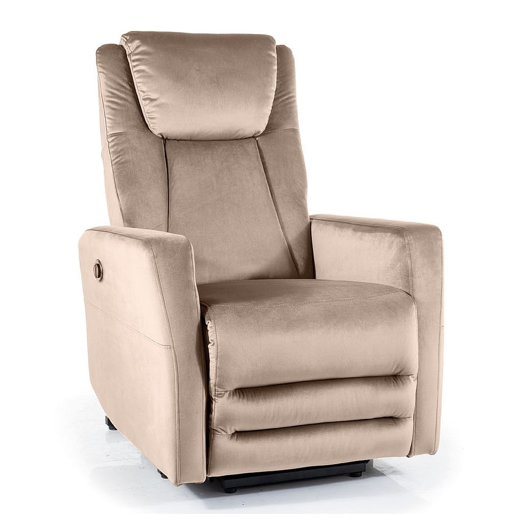 Změna polohy je u křesla Adonis Velvet otázka jediného stisku tlačítka – elektrický mechanismus obsluhuje jednoduchý ovladač, který si odložíte do praktické kapsy na pravé straně křesla. Hned vedle ní se nachází také USB napájecí port, takže můžete relaxovat třeba s tabletem a nebát se, že se vybije.