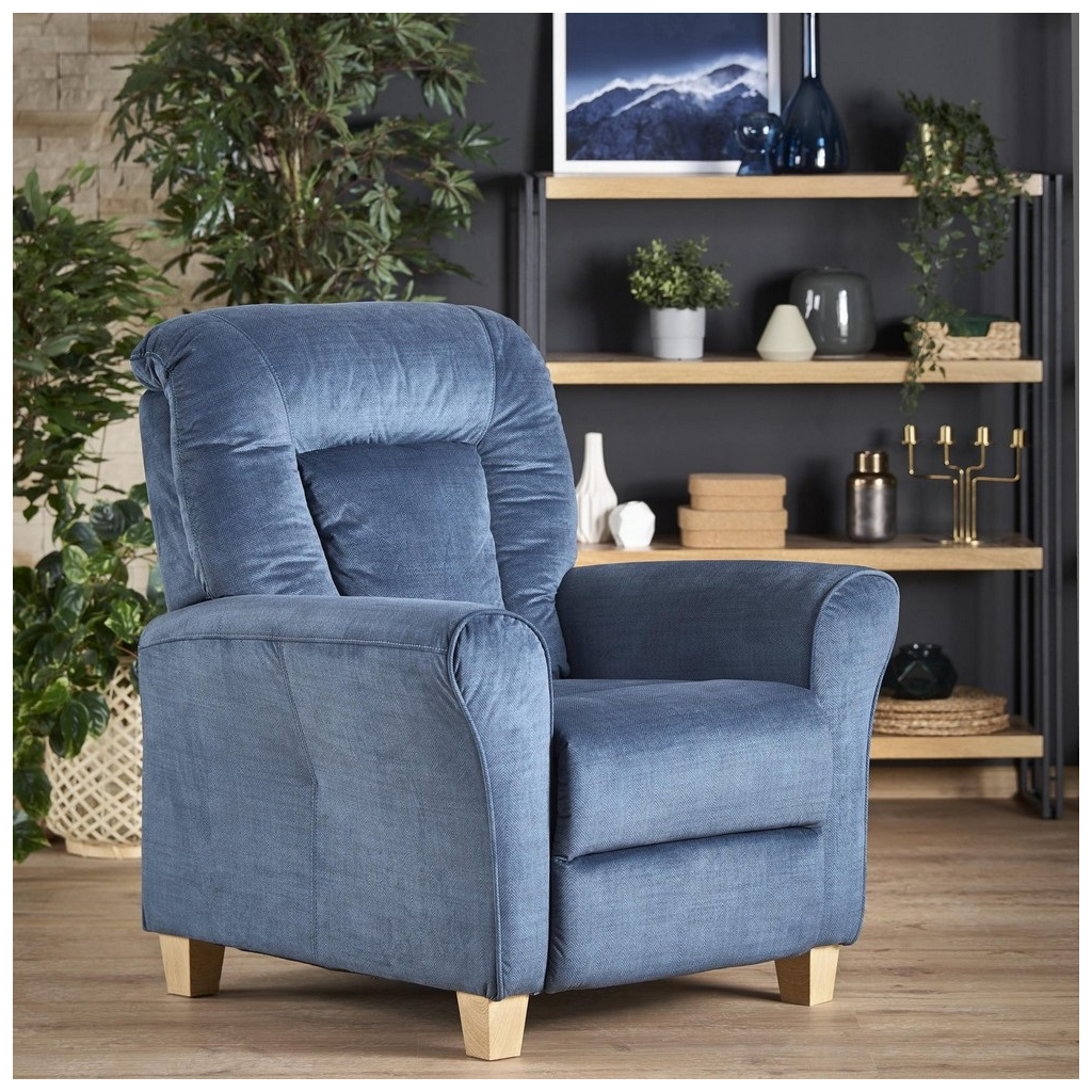 Polohovací křeslo Bard, modrá / přírodní dřevo