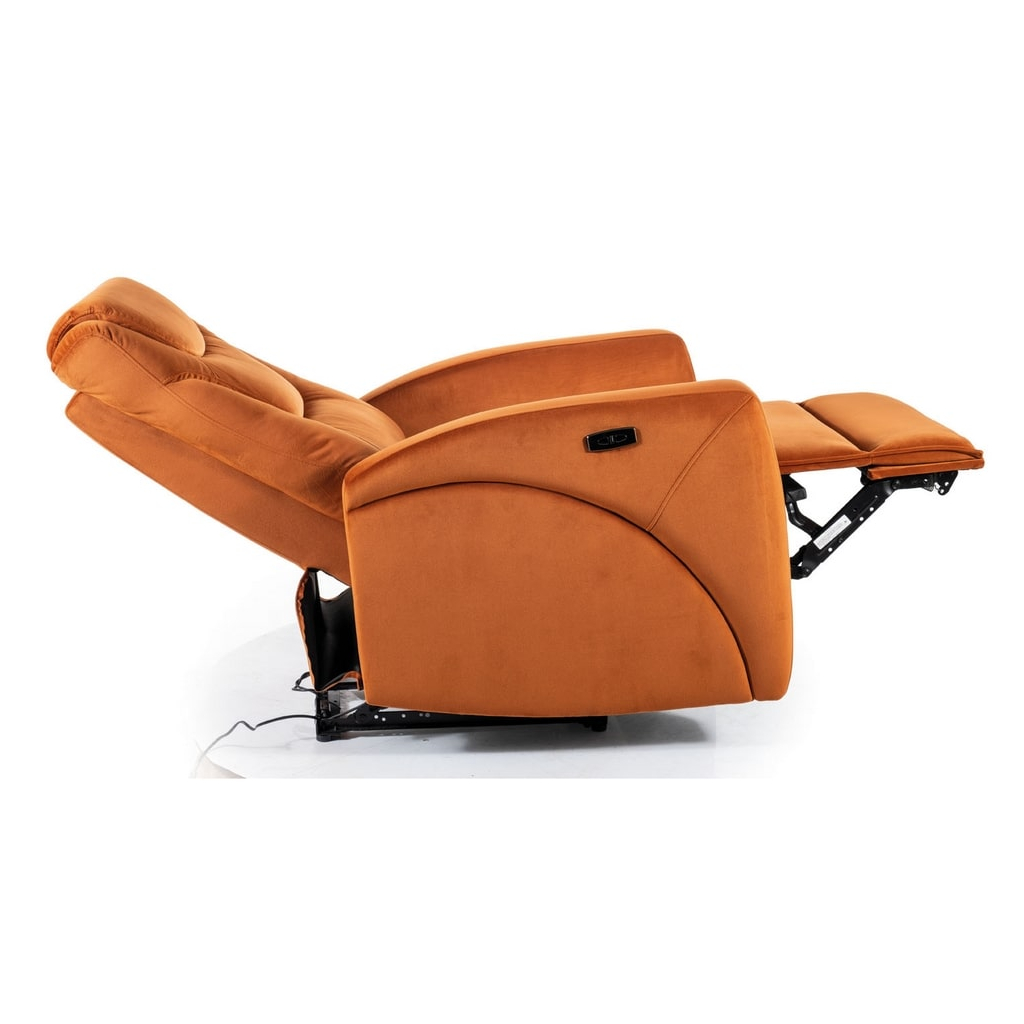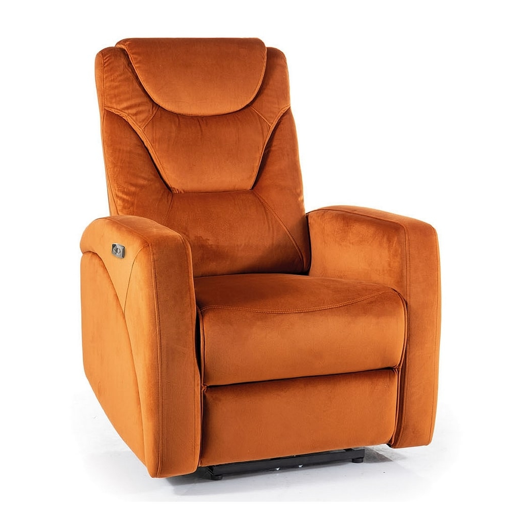 Změna polohy je u křesla Kronos Velvet otázka jediného stisku tlačítka – elektrický mechanismus ovládá panel s tlačítky na pravé područce. Šipkou dozadu si křeslo během chvilky sklopíte klidně až do polohy vleže, šipkou dopředu se pak vrátíte k normálnímu sezení.