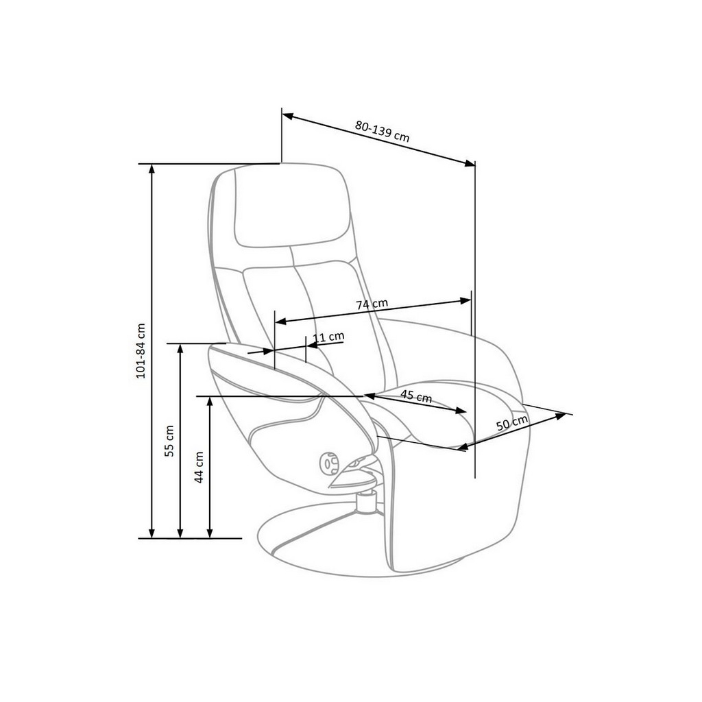 Křeslo Optima stojí na otočné podnoži s průměrem 50 cm, která umožňuje otáčení v křesle podobně jako na kancelářské židli. Jeho konstrukce je polstrovaná silnou výplní z polyuretanu a čalouněná moderní eko kůží.