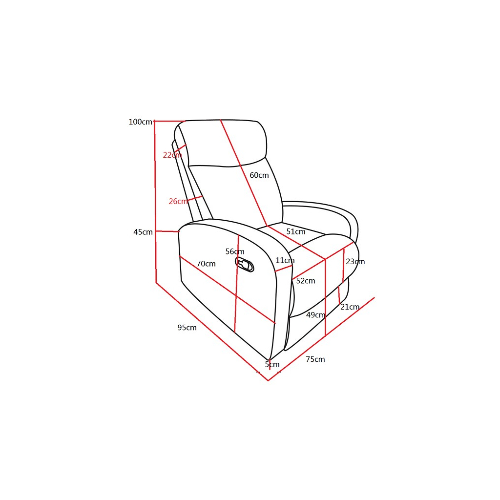 Jeho konstrukce je vyrobená z pevného MDF s kovovými prvky. Potažená je měkkou pěnou a šedou textilií. Polohování opěráku a podnožky se ovládá pomocí panelu na vnější straně pravé područky.