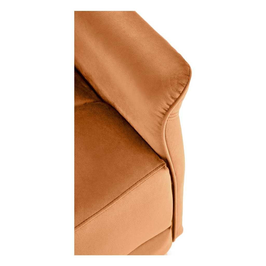 Maximální komfort při užívání zaručuje bohaté polstrování a potah ze sametové látky. Tou jsou čalouněné i područky, jež zajistí uvolněná ramena.