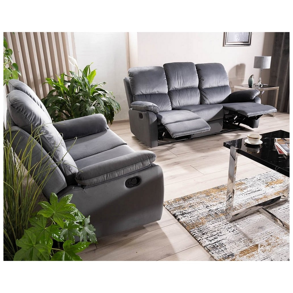 Polohovací pohovka Bud Velvet, trojsedák, šedá