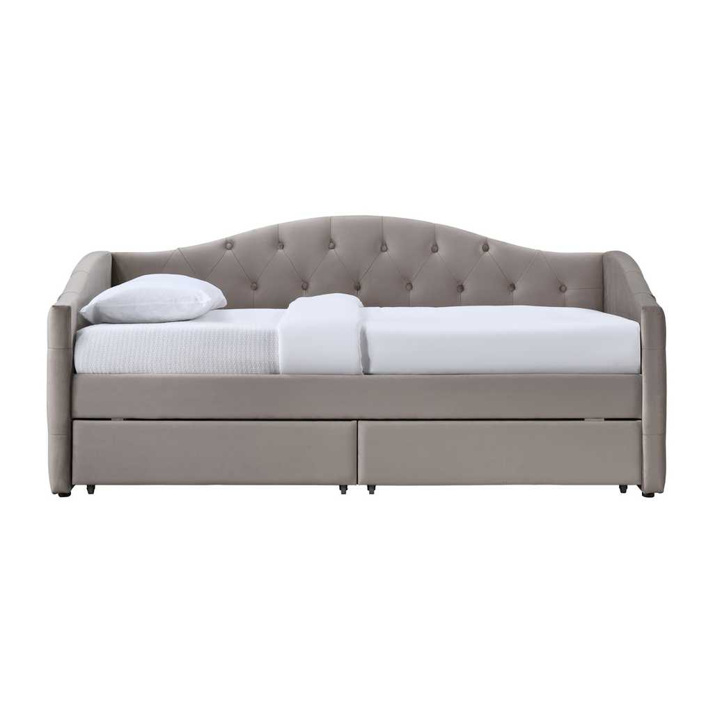 Na první pohled zaujme zvýšené čelo na boku postele. To, stejně jako zbytek postele, je čalouněné měkkou látkou, ke které se v noci rádi přitulíte. Šmrnc potahu dodávají ozdobné knoflíky. Konstrukci tvoří masivní kaučukové dřevo.