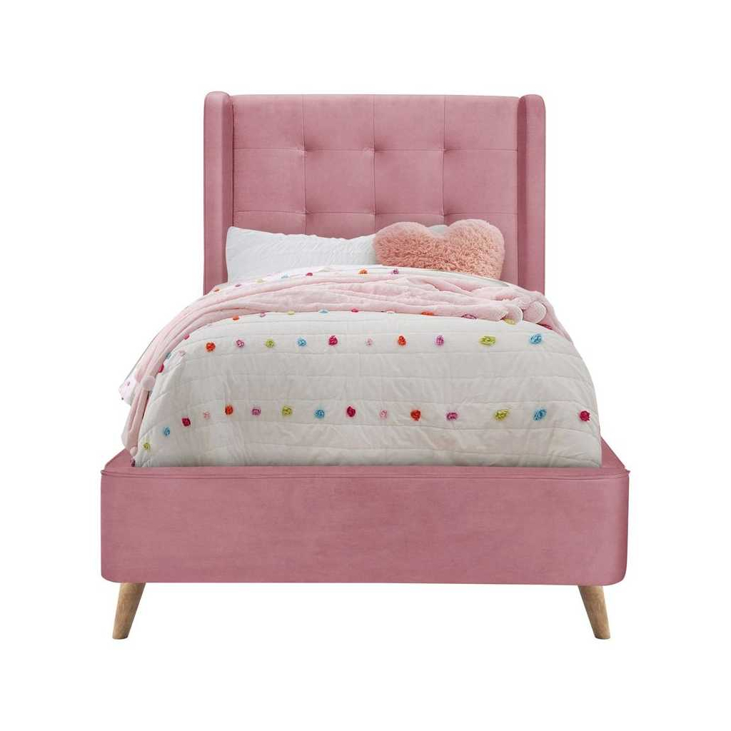 Jednoduchému designu postele dominuje vyvýšené čelo s vtaženými knoflíky. To jednak chrání stěnu před otěrem, jednak zvládne posloužit jako opěradlo, pokud rádi v posteli sledujete filmy nebo čtete.