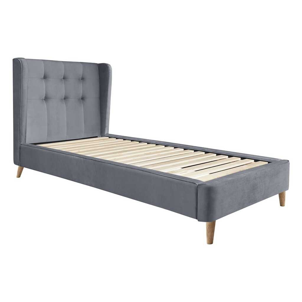 Jednoduchému designu postele dominuje vyvýšené čelo s vtaženými knoflíky. To jednak chrání stěnu před otěrem, jednak zvládne posloužit jako opěradlo, pokud rádi v posteli sledujete filmy nebo čtete.