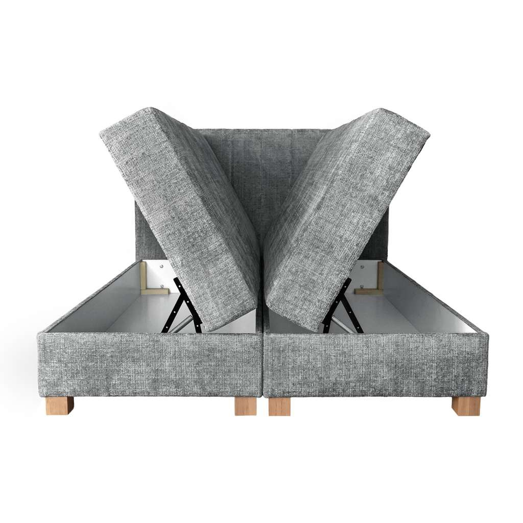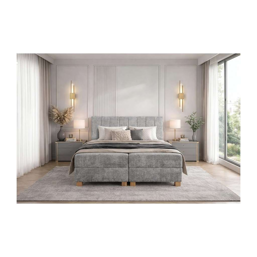 Postel je čalouněná kvalitní látkou, která je příjemná na dotek a zároveň odolná. Výška zadního čela 115 cm dodává nábytku elegantní vzhled a pohodlné opření. Její robustní konstrukce s nosností 200 kg zaručuje dlouhou životnost a stabilitu.