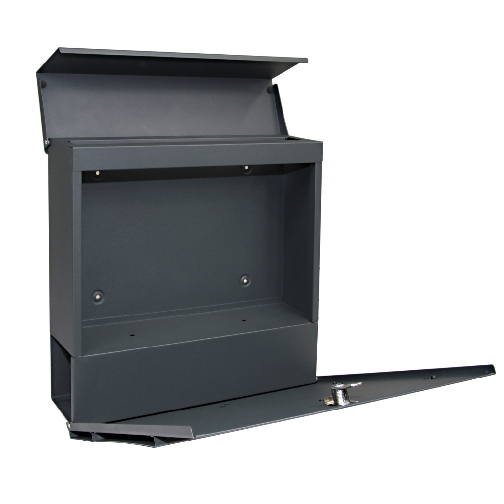 Díky vrchnímu víku se nestane, že by vaše dopisy rozmočil déšť, navíc materiál jako ocel je velice pevný. Udrží tak vaše dopisy v bezpečí.