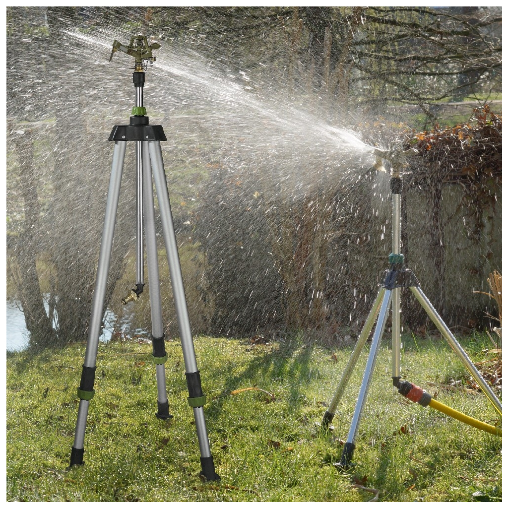 Postřikovač Fit Tripod najde své uplatnění především pro zavlažování exteriérů firmy, polí a vlastních zahrad. Připojuje se k němu zahradní hadice o tloušťce 1/2".