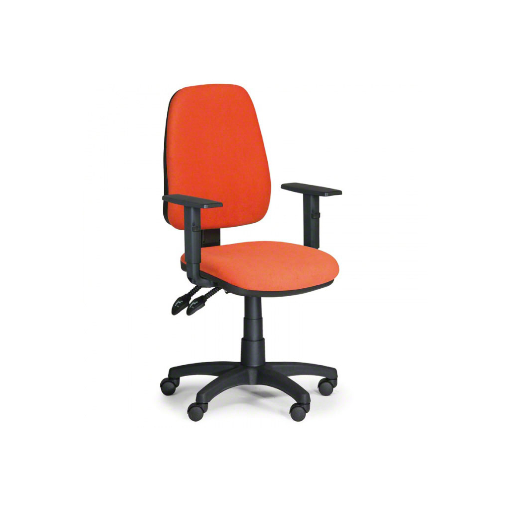 O stabilitu se postará pevný kříž z tvrzeného plastu. Standardně židli dodáváme s kolečky na měkké podlahy a koberce. Místo nich si však můžete dokoupit kluzáky, které zabraňují pohybu a zajistí vám větší stabilitu. Nosnost pracovní židle Alex s područkami je 120 kg a dodáváme ji ve čtyřech barevných provedeních. V modré, žluté, zelené a oranžové barvě.