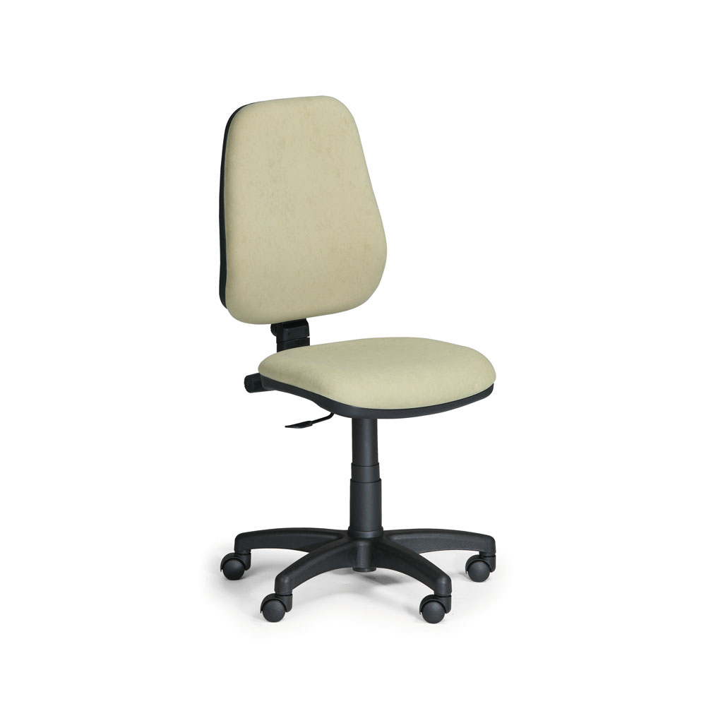 O stabilitu se postará pevný kříž, který je stejně jako celá konstrukce židle vyroben z odolného plastu. Standardně židli dodáváme s kolečky pro měkké podlahy. Místo nich si však můžete dokoupit kluzáky, které zabraňují pohybu a zajistí vám větší stabilitu. Nosnost pracovní židle Comfort bez područek je 110 kg a dodáváme ji ve čtyřech barevných provedeních. V modré, žluté, zelené a oranžové barvě.