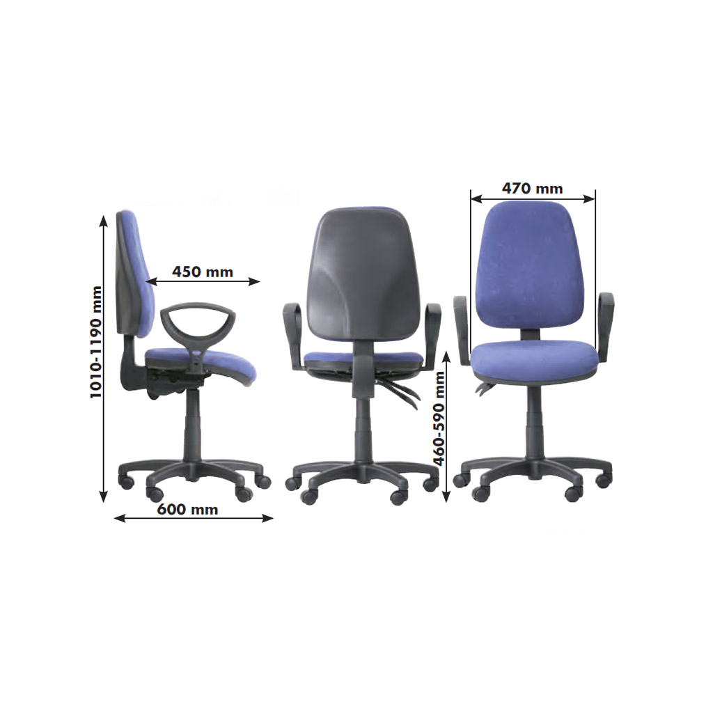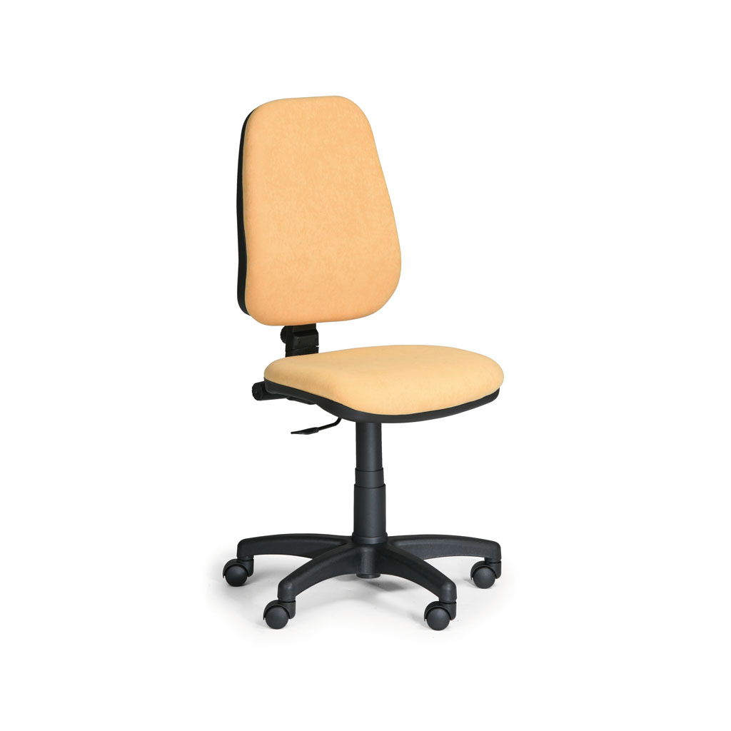 O stabilitu se postará pevný kříž, který je stejně jako celá konstrukce židle vyroben z odolného plastu. Standardně židli dodáváme s kolečky pro měkké podlahy. Místo nich si však můžete dokoupit kluzáky, které zabraňují pohybu a zajistí vám větší stabilitu. Nosnost pracovní židle Comfort bez područek je 110 kg a dodáváme ji ve čtyřech barevných provedeních. V modré, žluté, zelené a oranžové barvě.