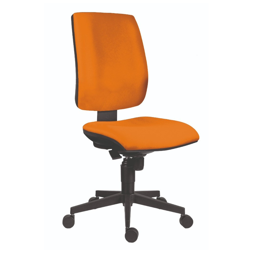 O stabilitu židle se postará pevný kříž, který je stejně jako celá konstrukce vyroben z odolného tvrzeného plastu. Opatřen je 5 kolečky na měkké podlahy. Hravě si poradí s koberci i PVC podlahou. Maximální nosnost této židle je 120 kg. Vybírat si můžete ze 4 barevných variant potahové látky.