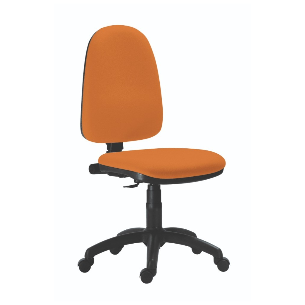 O stabilitu židle se postará pevný kříž, který je stejně jako celá konstrukce vyroben z odolného tvrzeného plastu. Opatřen je 5 kolečky na měkké podlahy. Hravě si poradí s koberci i PVC podlahou. Maximální nosnost této židle je 120 kg. Vybírat si můžete ze 3 barevných variant potahové látky - z šedé, oranžové a zelené.