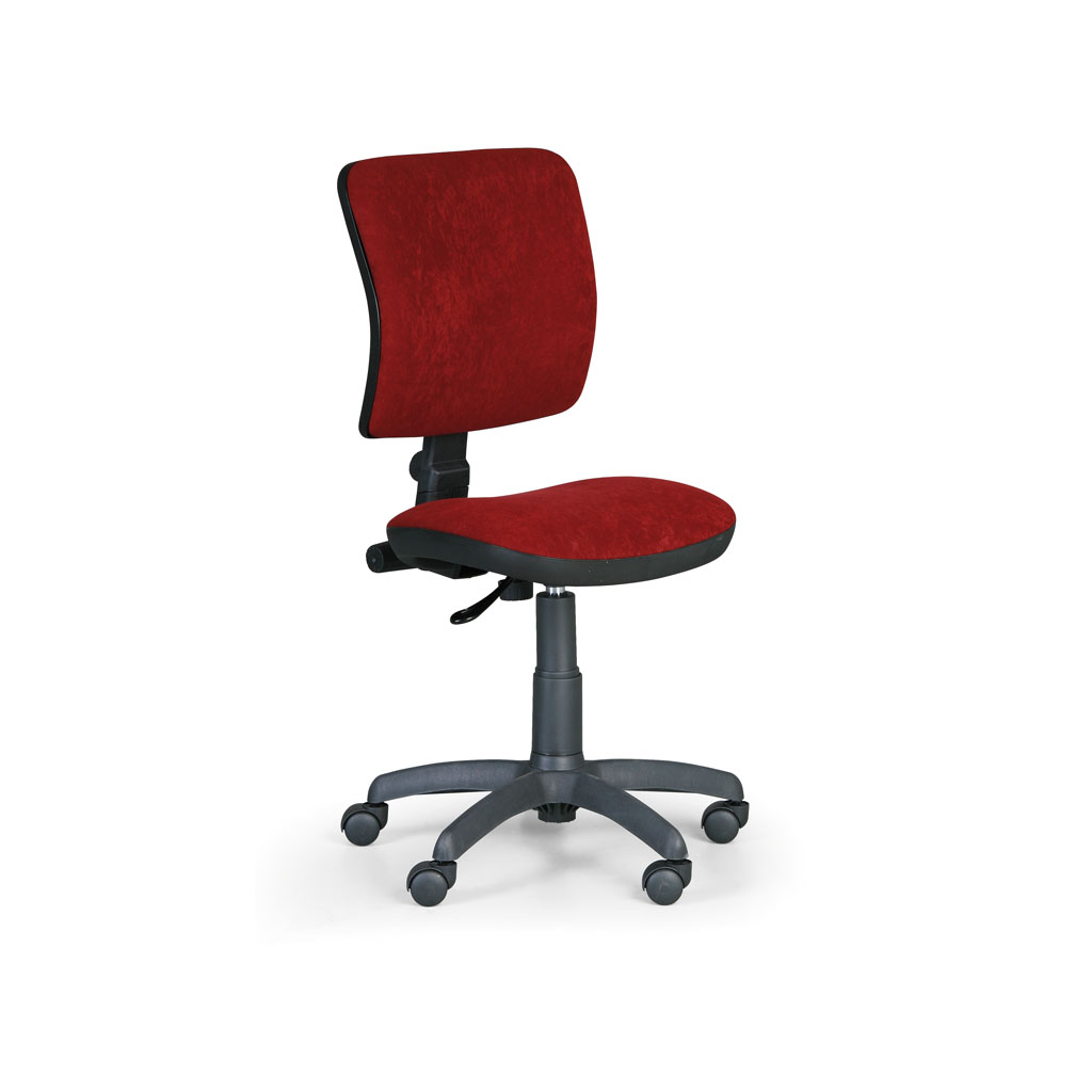 O stabilitu se postará pevný kříž, který je stejně jako celá konstrukce židle vyroben z odolného plastu. Standardně židli dodáváme s kolečky pro měkké podlahy. Místo nich si však můžete dokoupit kluzáky, které zabraňují pohybu a zajistí vám větší stabilitu. Nosnost pracovní židle Milano II je 100 kg a dodáváme ji ve čtyřech barevných provedeních. V šedé, modré, zelené a červené barvě.