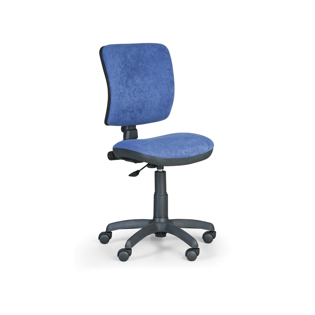 O stabilitu se postará pevný kříž, který je stejně jako celá konstrukce židle vyroben z odolného plastu. Standardně židli dodáváme s kolečky pro měkké podlahy. Místo nich si však můžete dokoupit kluzáky, které zabraňují pohybu a zajistí vám větší stabilitu. Nosnost pracovní židle Milano II je 100 kg a dodáváme ji ve čtyřech barevných provedeních. V šedé, modré, zelené a červené barvě.