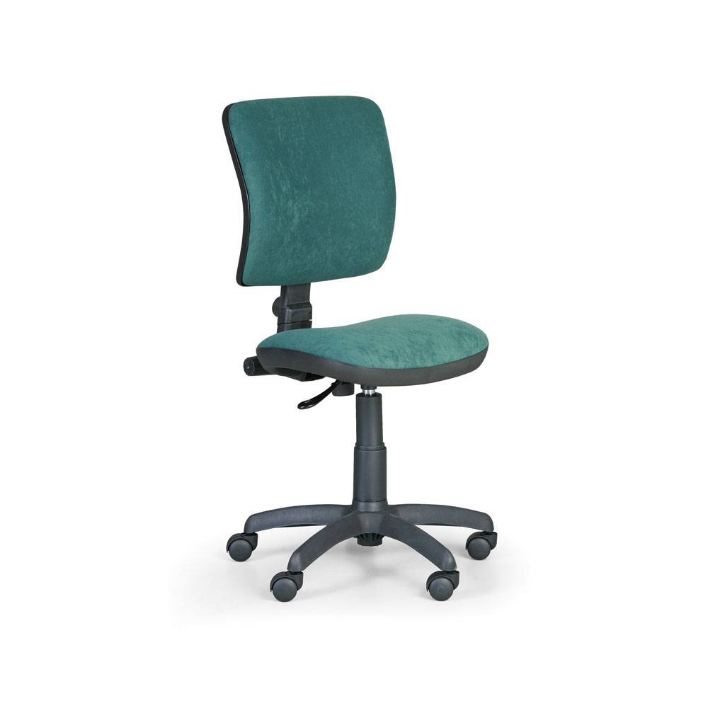 O stabilitu se postará pevný kříž, který je stejně jako celá konstrukce židle vyroben z odolného plastu. Standardně židli dodáváme s kolečky pro měkké podlahy. Místo nich si však můžete dokoupit kluzáky, které zabraňují pohybu a zajistí vám větší stabilitu. Nosnost pracovní židle Milano II je 100 kg a dodáváme ji ve čtyřech barevných provedeních. V šedé, modré, zelené a červené barvě.