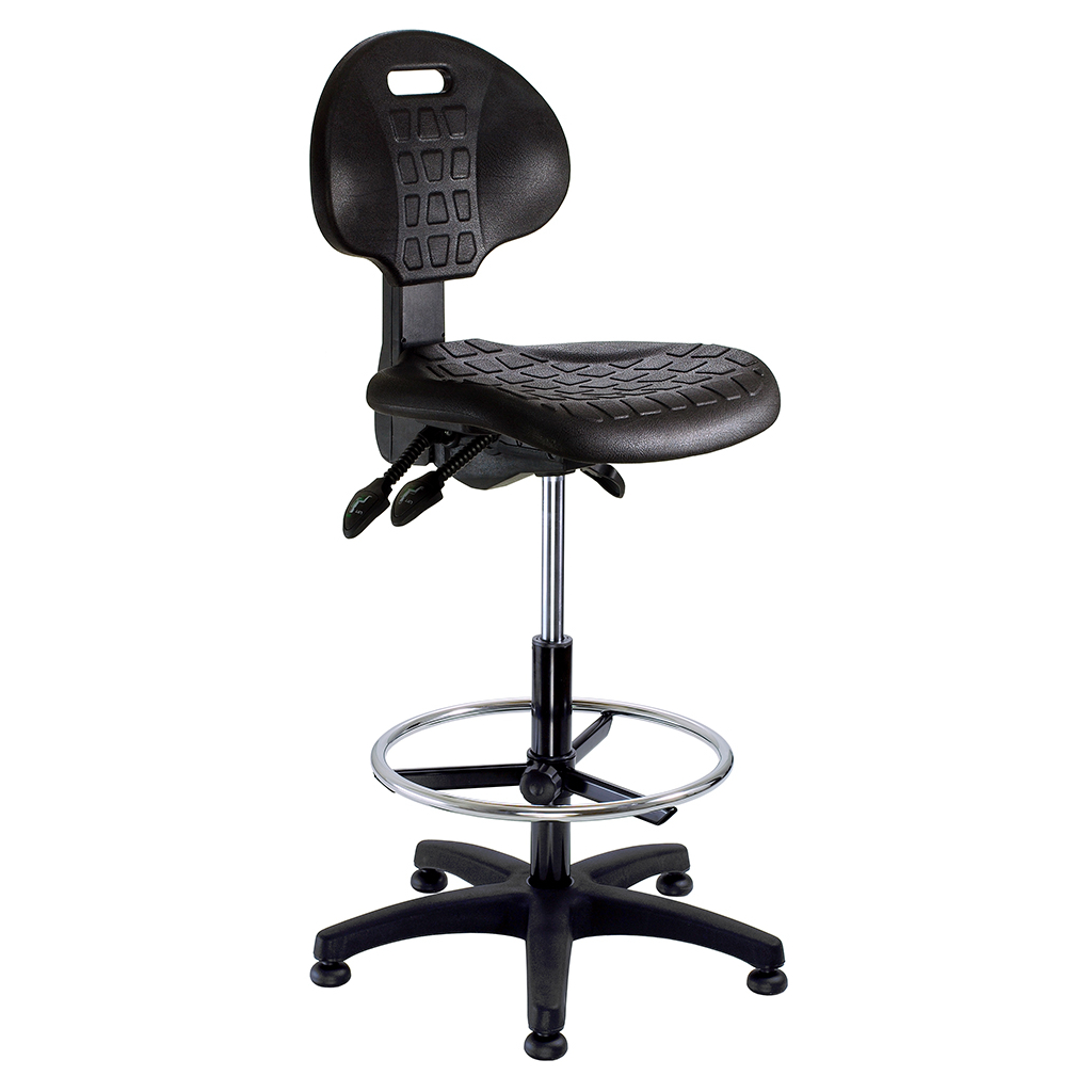 Pracovní židle Piera XL je skvělou volbou do průmyslových oblastí, zejména pak do montážních hal k pracovním linkám. Židle je vybavena asynchronní mechanikou a umožňuje nastavit sklon opěráku nezávisle na sklonu sedáku. Sezení a houpání na takové židli bude velmi pohodlné. Výška sedu od země u této židle dosahuje až 86 cm a i díky tomu má opěrný kruh pro podložení vašich nohou.