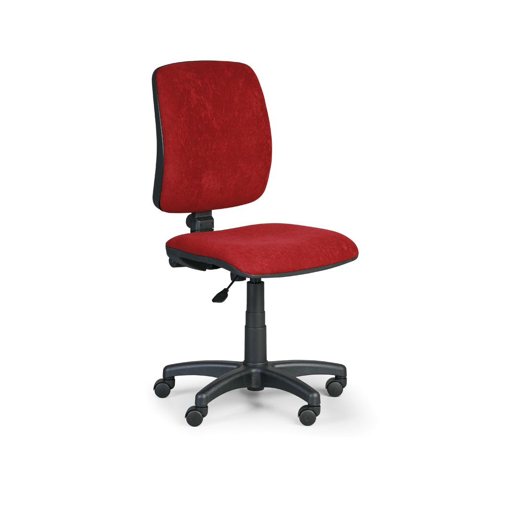 O stabilitu se postará pevný kříž, který je stejně jako celá konstrukce židle vyroben z odolného plastu. Standardně židli dodáváme s kolečky pro měkké podlahy. Místo nich si však můžete dokoupit kluzáky, které zabraňují pohybu a zajistí vám větší stabilitu. Nosnost pracovní židle Torino II je 120 kg a dodáváme ji ve čtyřech barevných provedeních. V šedé, modré, zelené a červené barvě.