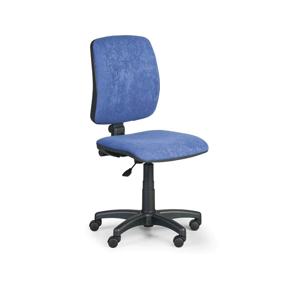 O stabilitu se postará pevný kříž, který je stejně jako celá konstrukce židle vyroben z odolného plastu. Standardně židli dodáváme s kolečky pro měkké podlahy. Místo nich si však můžete dokoupit kluzáky, které zabraňují pohybu a zajistí vám větší stabilitu. Nosnost pracovní židle Torino II je 120 kg a dodáváme ji ve čtyřech barevných provedeních. V šedé, modré, zelené a červené barvě.