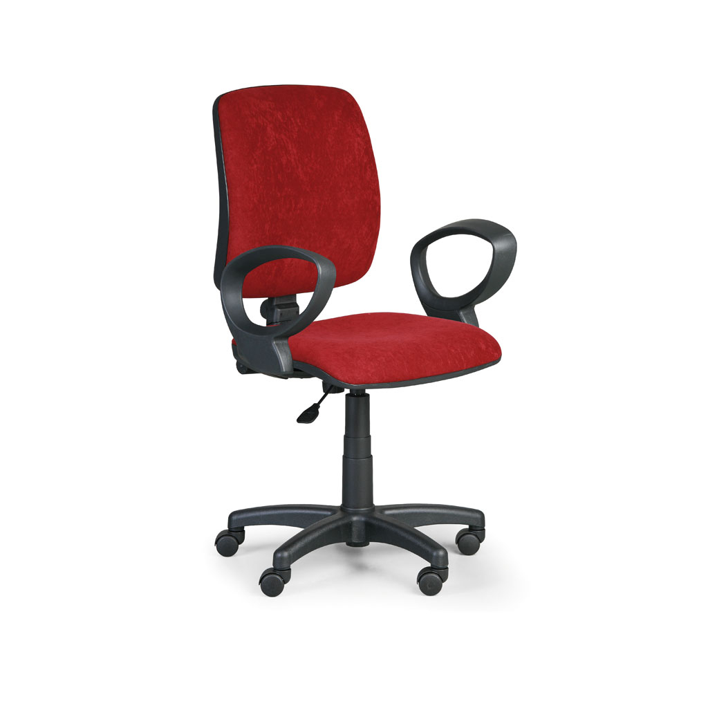 O stabilitu se postará pevný kříž, který je stejně jako celá konstrukce židle vyroben z odolného plastu. Standardně židli dodáváme s kolečky pro měkké podlahy. Místo nich si však můžete dokoupit kluzáky, které zabraňují pohybu a zajistí vám větší stabilitu. Nosnost pracovní židle Torino II s područkami je 120 kg a dodáváme ji ve čtyřech barevných provedeních. V zelené, modré, červené a šedé barvě.