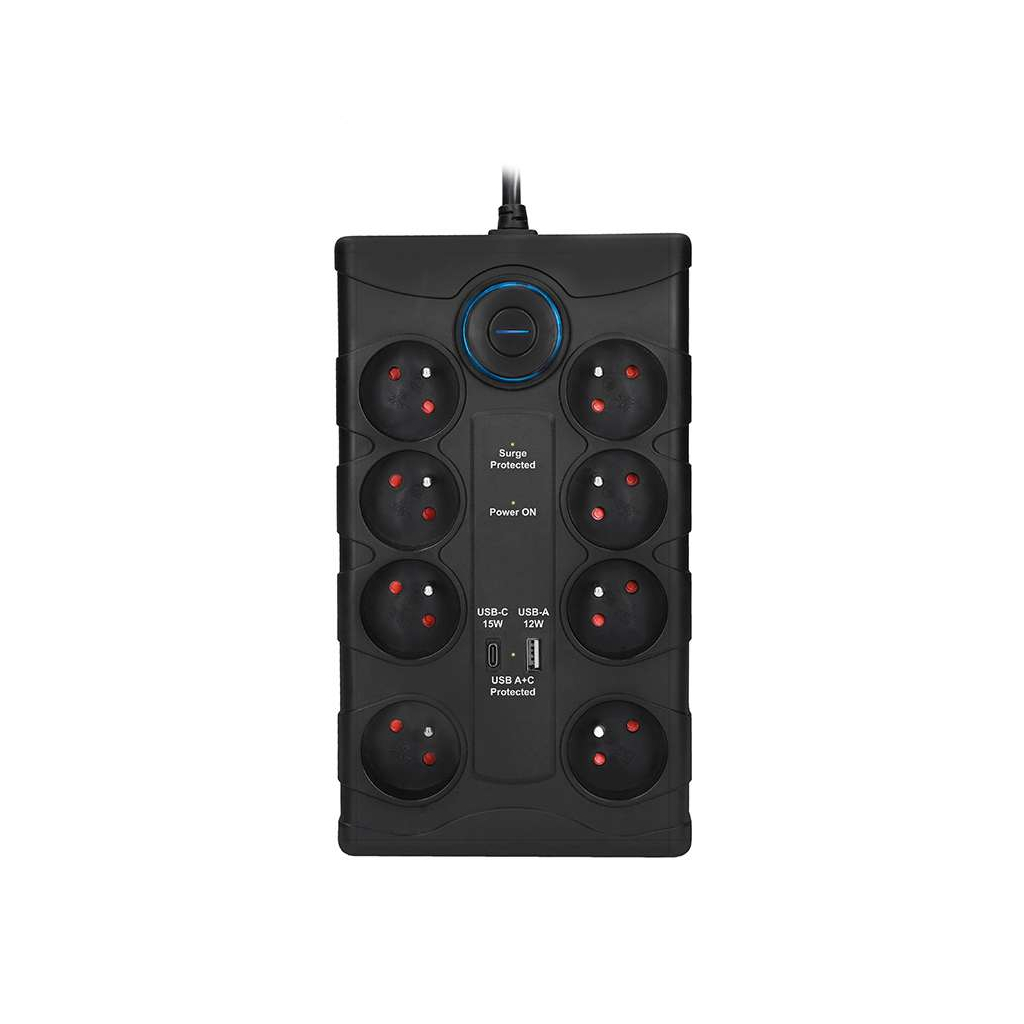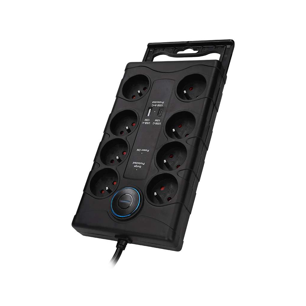 Přepěťová ochrana 8Z + USB A + USB C představuje spolehlivého pomocníka pro ochranu vašich elektronických zařízení proti výkyvům napětí. Díky osmi zásuvkám můžete připojit více spotřebičů najednou, a to i těch náročnějších, a zároveň využít vestavěná USB rozhraní k nabíjení mobilních zařízení bez potřeby dalších adaptérů.