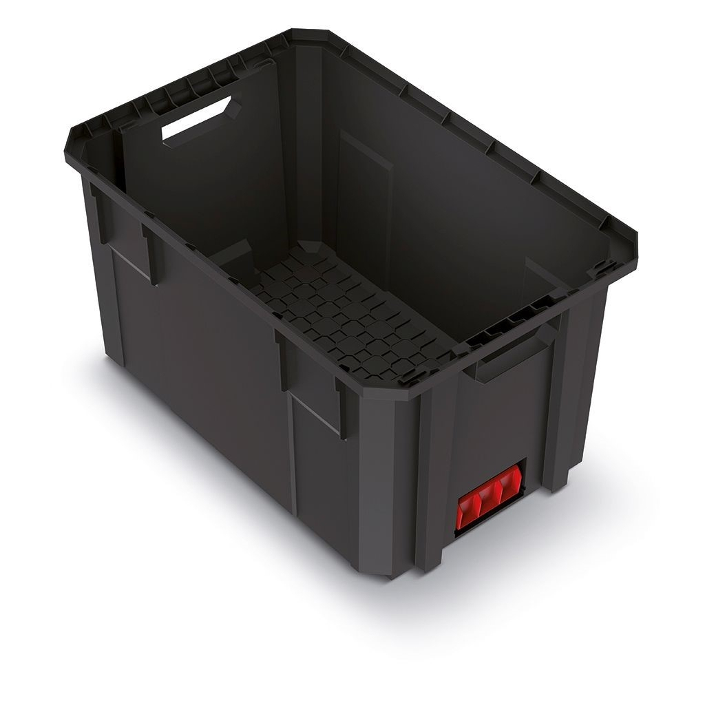 Základnu lze spojit s každým kufrem nebo boxem typu "A", který má horní zámek. Tento model jej nemá, zato ale nabízí možnost stohování více kusů. Abyste vždy efektivně využili prostor, stohují dokonce dvojím způsobem, o kterém rozhoduje otočení bedny o 180° podle svislé osy: