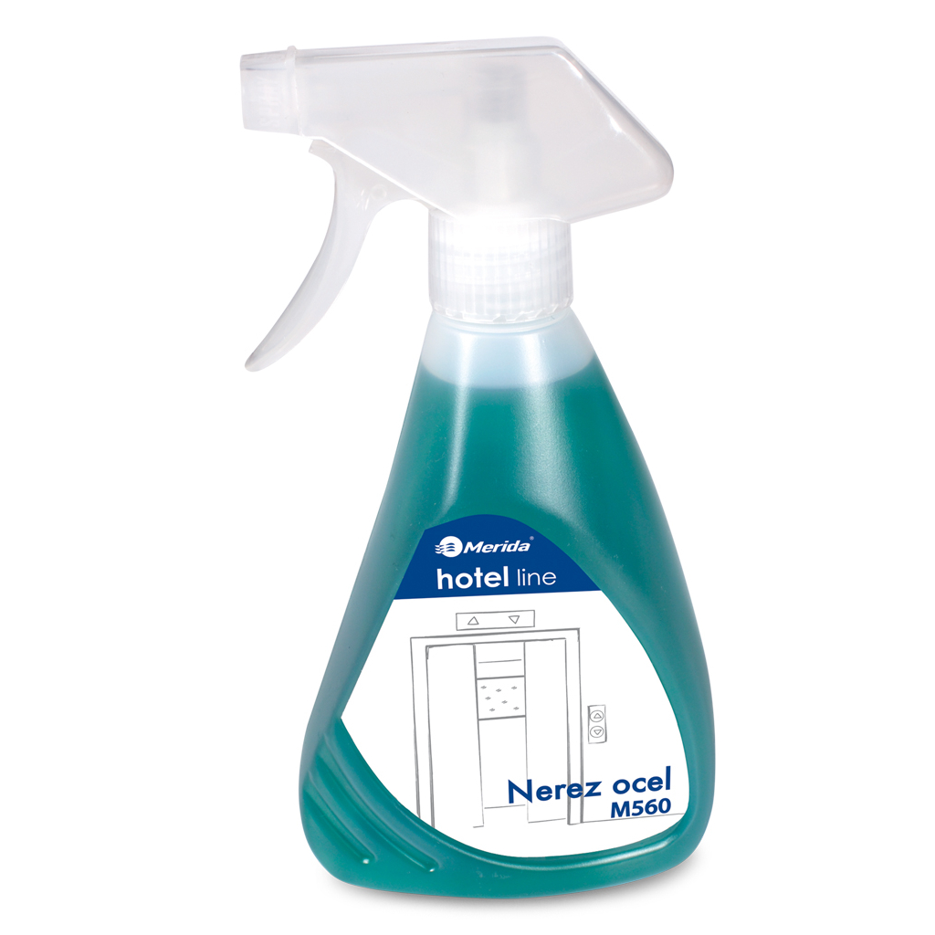 Přípravek na ošetřování nerezové oceli Merida Hotel Line je ideálním čisticím prostředkem zejména do koupelen. Je určen k vyčištění kovových úchytů a madel, které spolehlivě zbaví otisků prstů, mastnoty, a zároveň jim dodá lesk.