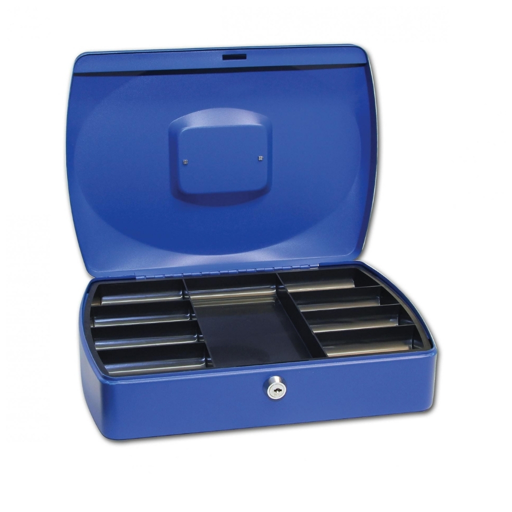 Příruční ocelová pokladna je praktickým způsob, jak uchovávat peníze. Pokladna obsahuje vyjímatelnou plastovou vanu na mince. Pod vanou můžete následně schovávat papírovou hotovost.