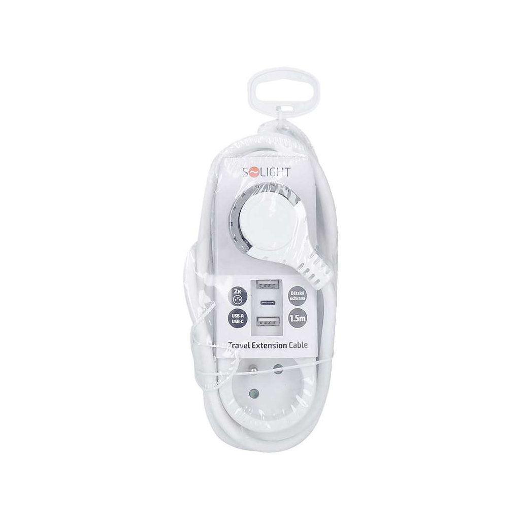 Prodlužovací kabel 2Z + 2x USB A + USB C - 1,5m, 3x1,0, bílá