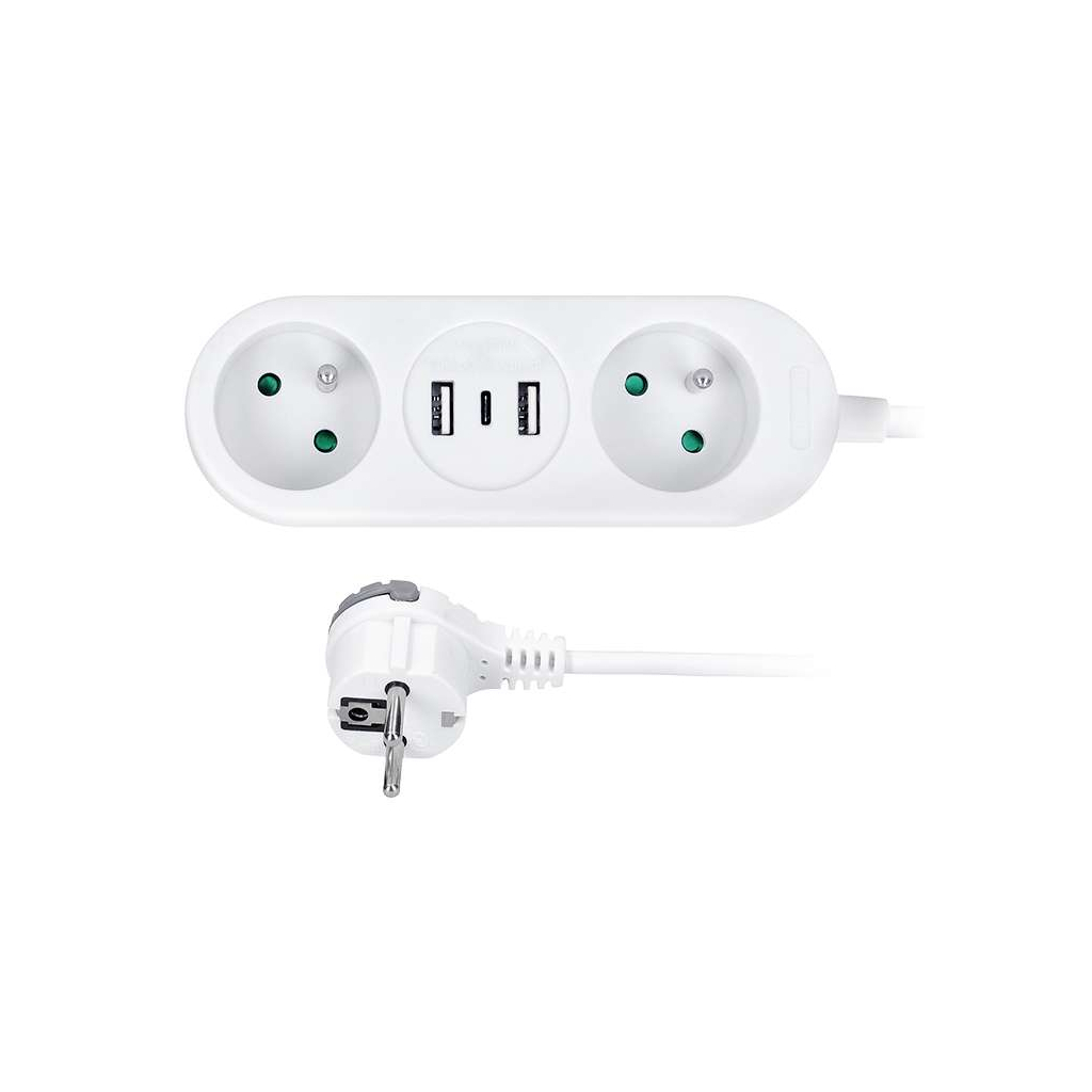 Prodlužovací kabel nabízí praktické řešení pro připojení více elektrických zařízení a zároveň pohodlné nabíjení přes USB porty. Díky dvěma zásuvkám a třem USB portům (včetně moderního USB-C) zvládnete napájet klasické přístroje i nabíjet smartphony, tablety či další elektroniku bez nutnosti adaptérů.