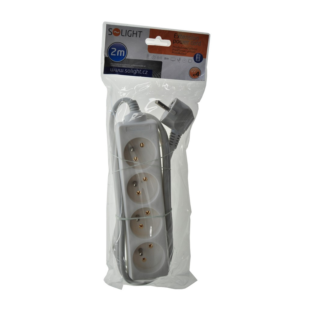 Prodlužovací kabel opatřený vidlicí na jednom konci a čtyřmi zásuvkami na konci druhém. Délka kabelu činí 2 metry a průřez vodičů se rovná 3 × 1,0mm².
