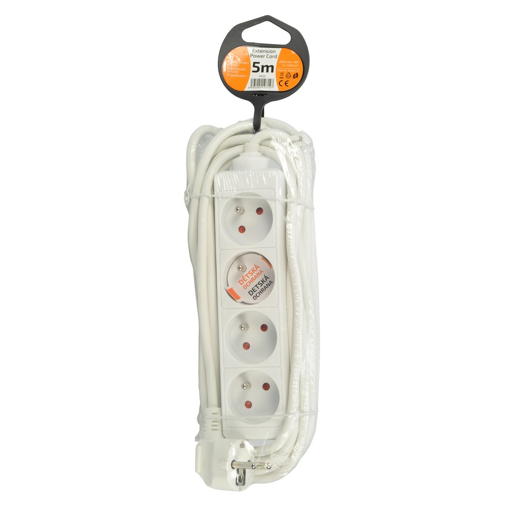 Prodlužovací kabel opatřený vidlicí na jednom konci a třemi zásuvkami na konci druhém. Délka kabelu činí 5 metrů a průřez vodičů se rovná 3 × 1,0mm².