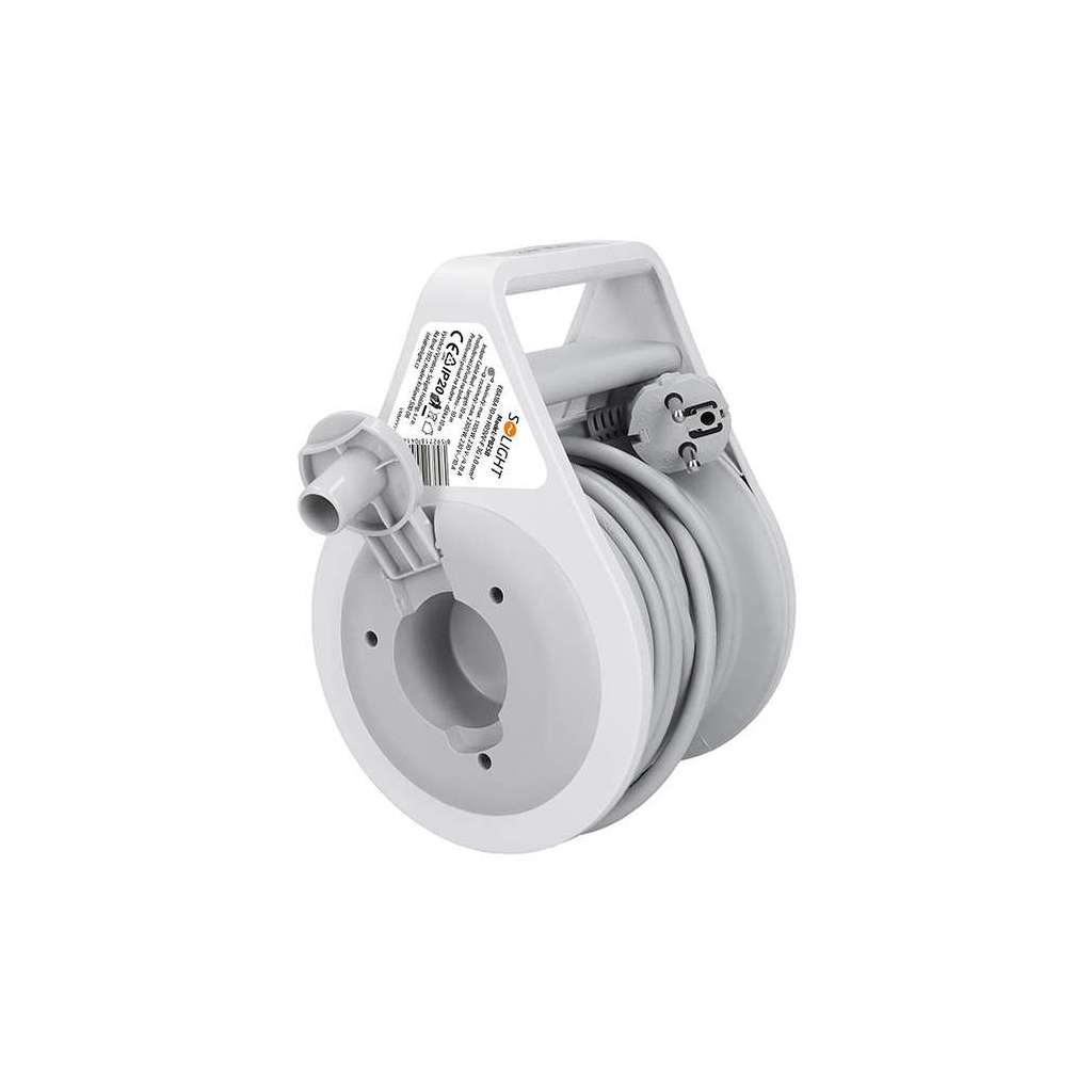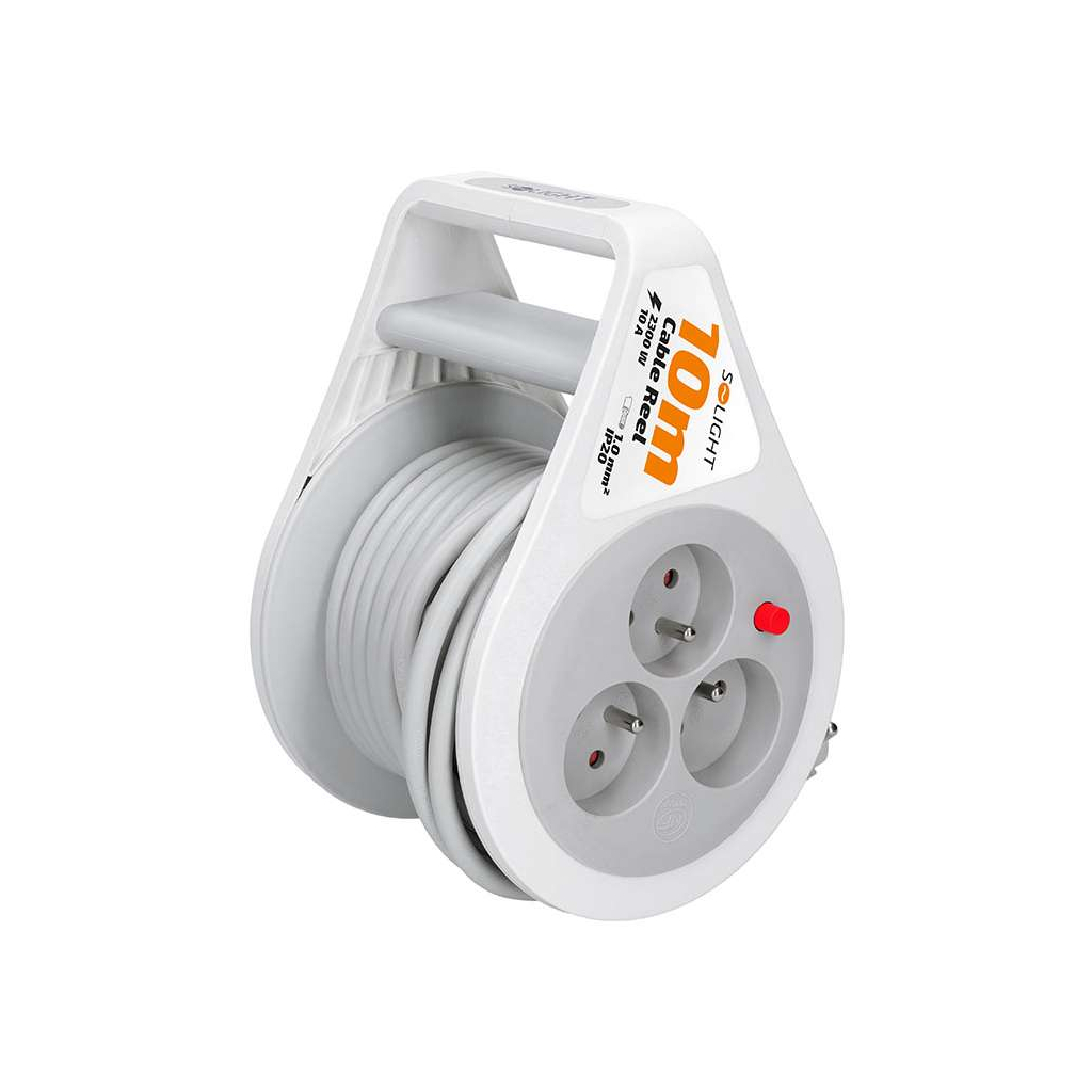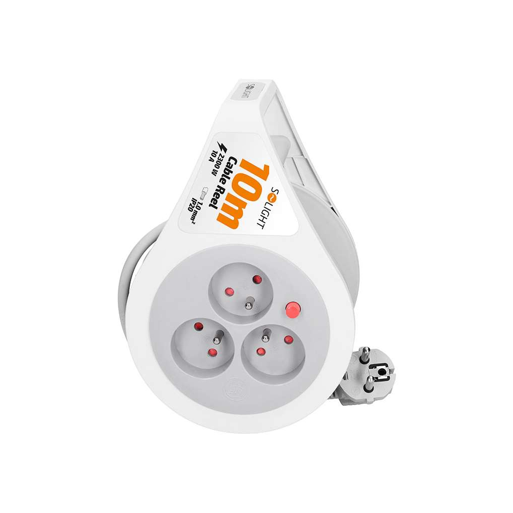 Kabel s průřezem 3×1,0 mm² je uložen v robustním plastovém těle s praktickým navíjecím mechanismem. Tři zásuvky na bubnu jsou vybaveny dětskou pojistkou, která zvyšuje bezpečnost při používání. Tento model je vhodný pro běžné elektrické přístroje s maximálním zatížením až 2300 W při rozvinutí kabelu.