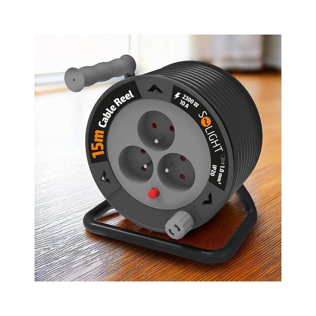 Kompaktní buben umožňuje snadné navíjení a přenášení, což oceníte při častém používání a přemisťování na různé pracovní stanoviště. Tři zásuvky vybavené dětskými pojistkami zajistí bezpečný provoz pro více přístrojů zároveň, a zároveň chrání před přetížením.