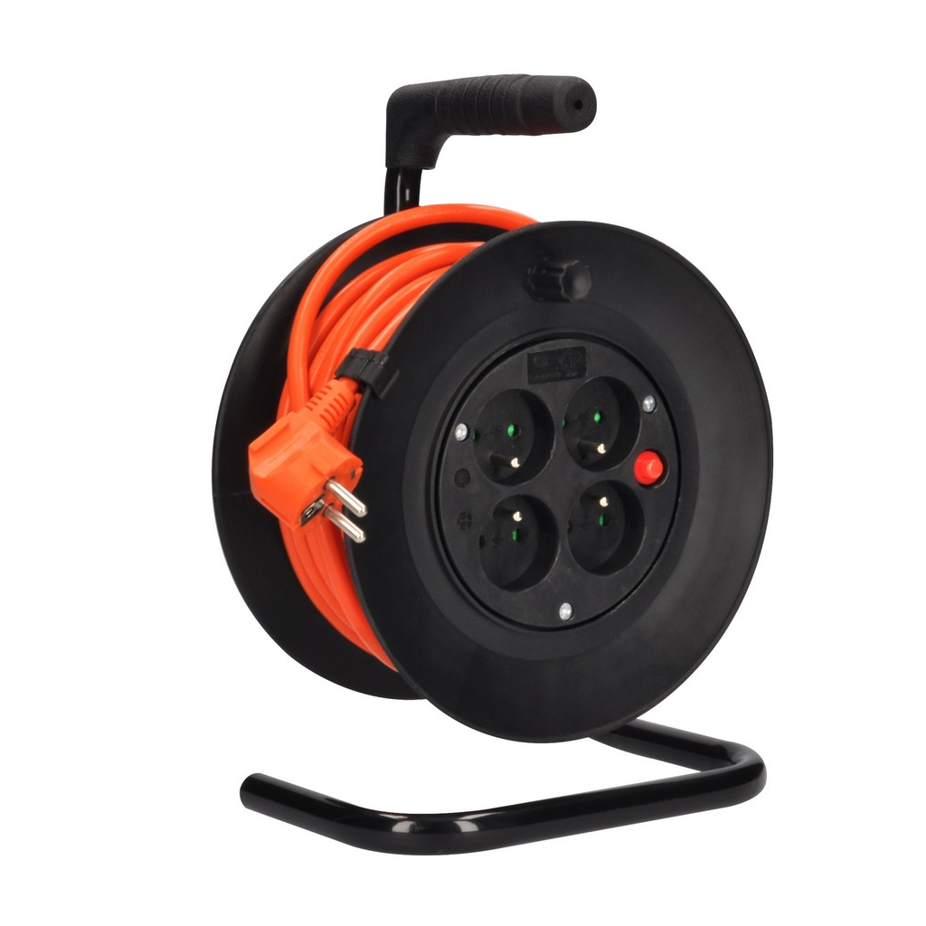 Prodlužovací kabel opatřený vidlicí na jednom konci a čtyřmi zásuvkami na konci druhém. Délka kabelu činí 15 metrů a je namotán na bubnu. Průřez vodičů se rovná 3 × 1,5mm².