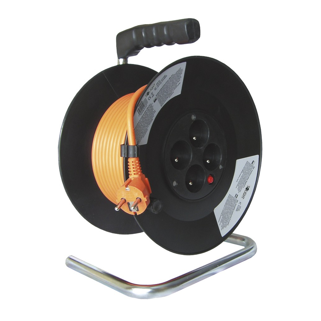 Prodlužovací kabel opatřený vidlicí na jednom konci a čtyřmi zásuvkami na konci druhém. Délka kabelu činí 20 metrů a je namotán na bubnu. Průřez vodičů se rovná 3 × 1,5mm².