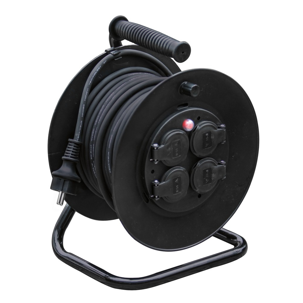 Prodlužovací kabel opatřený vidlicí na jednom konci a čtyřmi zásuvkami na konci druhém. Délka kabelu činí 50 metrů a je namotán na bubnu. Průřez vodičů se rovná 3 × 1,5mm².