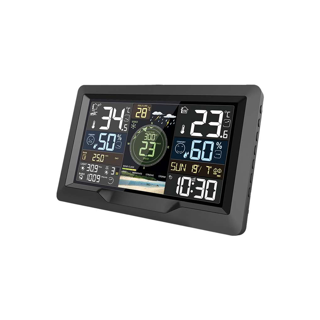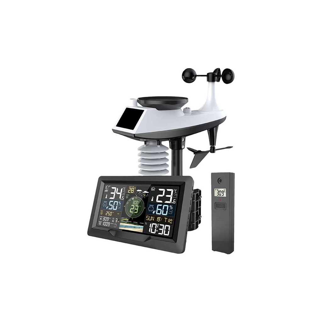 Profesionální meteostanice TE91 WiFi je ideálním nástrojem pro detailní a spolehlivé sledování počasí doma i v práci. Díky aplikaci Smart Life či Tuya Smart můžete mít všechny meteorologické informace vždy přehledně dostupné přímo ve svém chytrém telefonu. Stanice nabízí široký rozsah měření, který zahrnuje vnitřní i venkovní teplotu a vlhkost, atmosférický tlak, rychlost a směr větru, srážky, světelný i UV index.