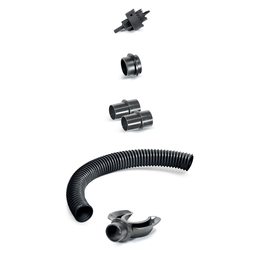 Sada je určena k připojení sudu k okapnímu svodu. Kromě hadice obsahuje vykružovadlo, 3 redukce a lapač vody.