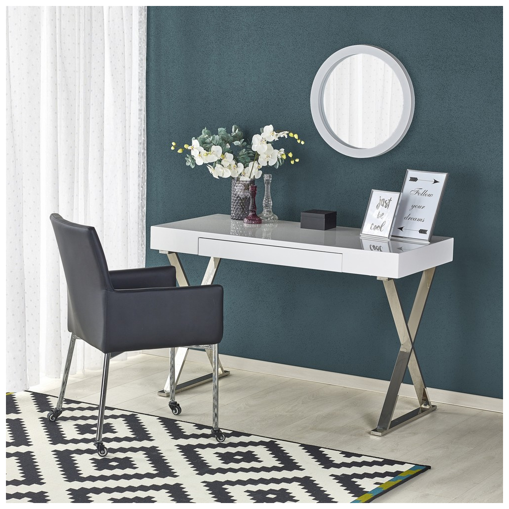 Elegantní pracovní stůl Colma využijete především v kancelářích, pracovnách či studovnách pro každodenní i příležitostnou práci. Doporučujeme jej zejména pro práci se stolním počítačem či jako psací stůl. Jeho pracovní deska je vyrobená z laminované dřevotřísky v bílém barevném provedení. Její součástí je praktická zásuvka na uložení vašich dokumentů, kancelářských či psacích potřeb. Pevná kovová podnož s chromovanou povrchovou úpravou se postará o celkovou stabilitu stolu.