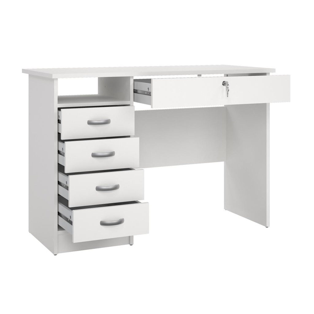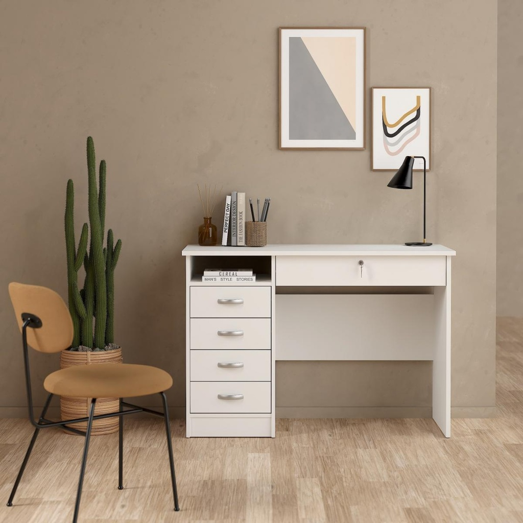 Velkou výhodou je vestavěný úložný prostor se zásuvkami, kam snadno uložíte své psací potřeby, dokumenty nebo různé doplňky, čímž si udržíte pořádek a přehled na pracovní ploše. S rozměry přizpůsobenými běžným prostorovým požadavkům se stůl hodí do dětských, studentských i domácích pracovních koutů.