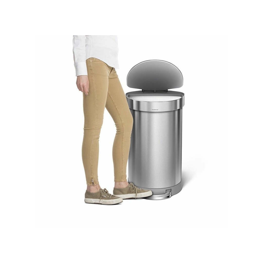 Půlkulatý pedálový koš 45 l, matná ocel, nerez