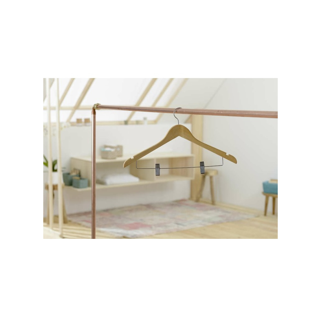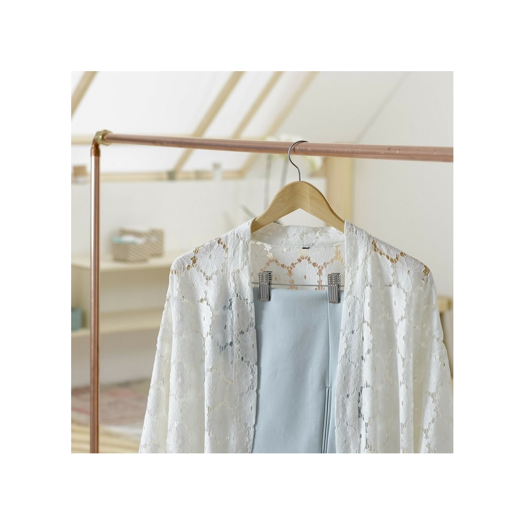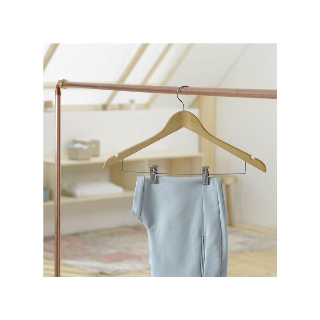 Ramínko Compactor je skvělým doplňkem do všech šatních skříní, ať už v kanceláři, nebo v domácnosti. Je vyrobeno ze dřeva a disponuje rozměry 44,5 × 1,2 × 26,6 cm. Výhodou ramínek je jejich tenký profil, díky kterému v závěsném prostoru nezaberou mnoho místa, a také uchycovací klipy, které vám pomohou při zavěšení sukně či kalhot.